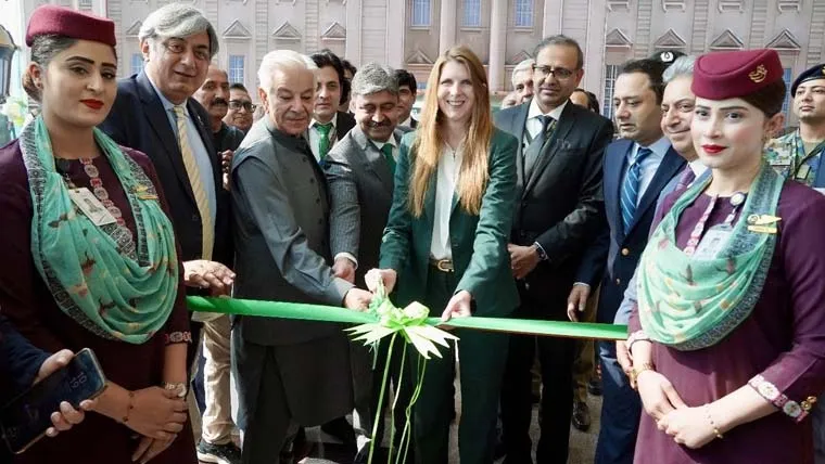 اسلام آباد ایئرپورٹ پر منعقدہ شاندار تقریب میں وزیر دفاع خواجہ آصف، برطانوی ہائی کمشنر جین میرٹ، ایوی ایشن حکام اور پی آئی اے انتظامیہ سمیت دیگر اہم شخصیات نے شرکت کی۔