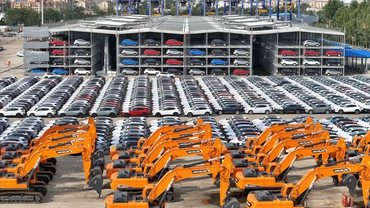 چین کے مشرقی صوبے شان ڈونگ کے یان تائی بندرگاہ پر مقامی طور پر تیار کردہ گاڑیاں اور انجینئرنگ مشینری کی گاڑیاں برآمد کے لئے کھڑی نظر آرہی ہیں۔(شِنہوا)