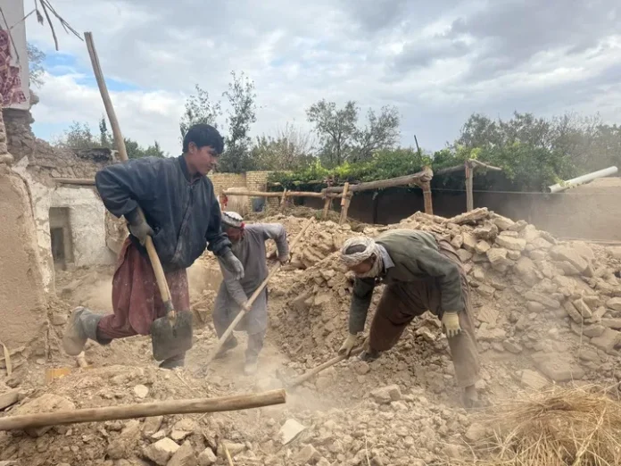 افغانستان کے علاقے  خلم میں لوگ زلزلے سے تباہ ہونےوالے گھروں کا ملبہ ہٹا رہے ہیں۔(شِنہوا)