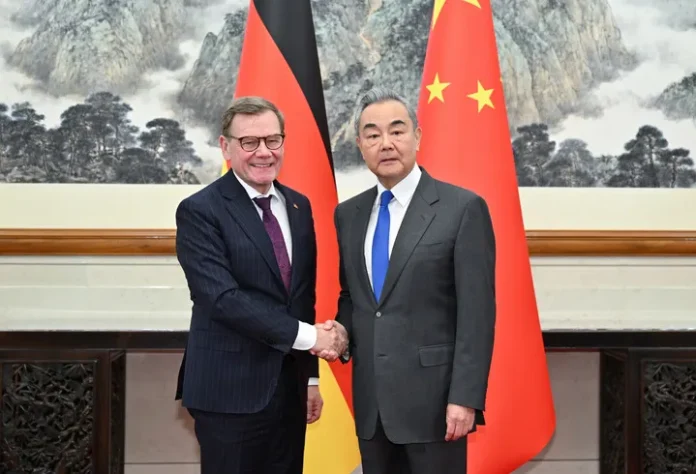 کمیونسٹ پارٹی آف چائنہ کی مرکزی کمیٹی کے سیاسی بیورو کے رکن وانگ یی نے بیجنگ میں جرمن وزیرِ خارجہ جوہان ویڈفل سے گفتگو کرتے ہوئے کہا کہ توقع ہے کہ جرمنی چین کی ترقی کو مضبوط تعاون، باہمی فائدے اور مشترکہ جیت کے مواقع کے طور پر دیکھے گا اور دونوں ممالک جامع تزویراتی شراکت داری کی مستحکم اور صحت مند پیشرفت کو فروغ دینے کے لئے مل کر کام کریں گے۔