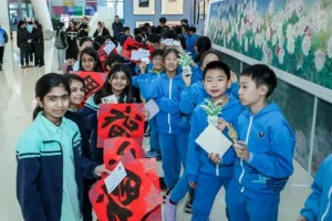 بیجنگ کے شی جیا ایکسپیریمنٹل سکول اور پاکستانی ایمبیسی کالج بیجنگ سے تقریباً 100 طلبہ ایک دن کے لئے باہمی ثقافتی تعلقات اور مل کر سیکھنے کے لئے جمع ہوئے۔
