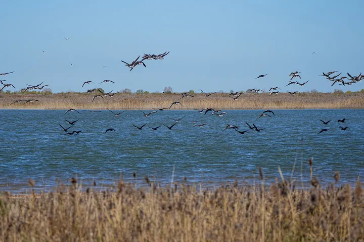 جنان(شِنہوا)سردیوں میں دریائے زرد کے دہانے پر لاکھوں مہاجر پرندے پرواز بھرتے ہیں جن کے پروں کی سرد ہوا میں پھڑپھڑاہٹ آسمان پر ابھرتی ہوئی لہر کا منظر پیش کرتی ہے۔