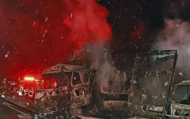 غیر ملکی میڈیا کے مطابق حادثہ اس وقت پیش آیا جب شاہراہ پر برفباری اور پھسلن کی وجہ سے 2 ٹرک ٹکرائے جس کے بعد دیگر گاڑیاں ایک دوسرے سے ٹکراتی چلی گئیں۔