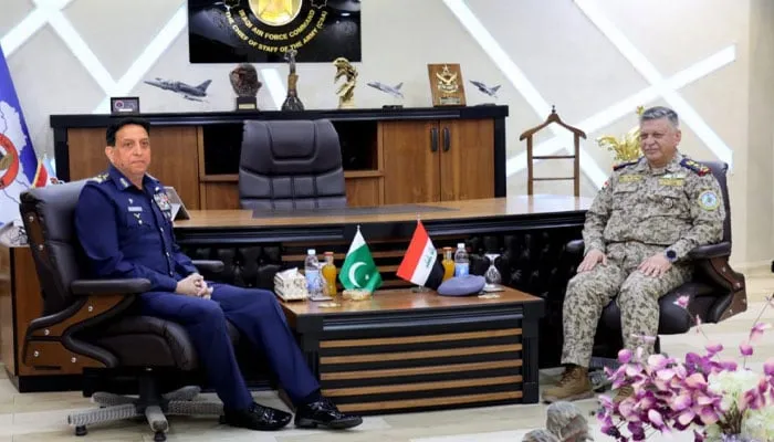 بعد ازاں ایئر چیف نے عراقی فضائیہ کے کمانڈر سے ملاقات کی جس میں دوطرفہ دفاعی اور فضائی تعاون پر تفصیلی گفتگو ہوئی جبکہ مشترکہ تربیت، صلاحیتوں میں اضافے اور مستقبل میں تعاون کے نئے مواقع تلاش کرنے پر اتفاق کیا گیا، ایئر چیف نے عراقی فضائیہ کی تربیت کے شعبے میں پاک فضائیہ کی جانب سے مکمل تعاون کی یقین دہانی کرائی۔