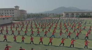 نان میاؤ مڈل سکول میں ہر روز ’’مارشل آرٹس کی بریک‘‘ ہوتی ہے۔ بچے کھیل کے میدان میں مربع شکل میں قطار میں کھڑے ہوکر بیک وقت مکے، لاتیں مارتے اور فلک شگاف نعرے لگاتے ہیں-(شِنہوا)