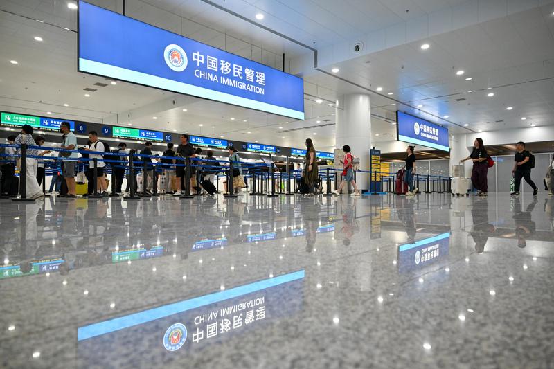 چین کے شمالی شہر تیانجن کے تیانجن بن ہائی انٹرنیشنل ایئرپورٹ کے ٹرمینل ون پر نئی امیگریشن معائنہ سہولت کا منظر-(شِنہوا)