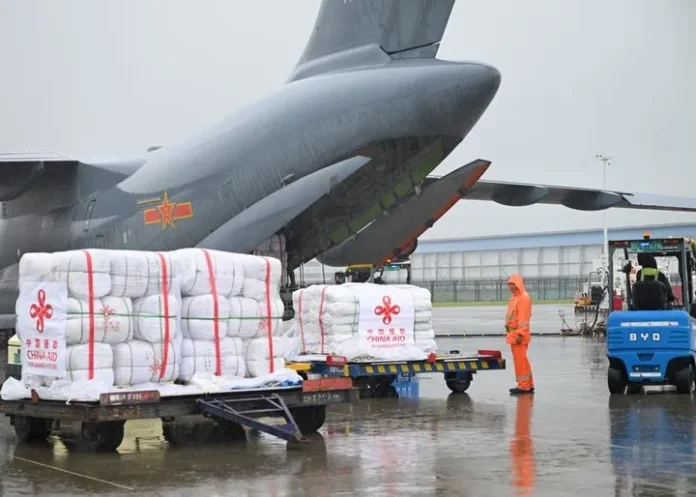 چینی فضائیہ کے مطابق 2 وائی-20 ٹرانسپورٹ طیاروں نے یہ سامان، جس میں خیمے اور کمبل شامل ہیں، پاکستان کے دارالحکومت اسلام آباد پہنچایا۔