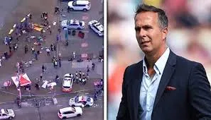 انگلینڈ کے سابق کپتان مائیکل وان نے انکشاف کیا ہے کہ وہ آسٹریلیا کے شہر سڈنی کے ساحل پر فائرنگ واقعہ کے وقت ایک ریسٹورنٹ میں بند تھے، انکا کہنا تھا کہ ریسٹورنٹ میں بند ہونا بہت خوفناک تھا، ہم محفوظ گھر پہنچے، ایمرجنسی فورسز اور دہشتگردوں کیساتھ لڑنے والے کا شکریہ ادا کرتا ہوں۔