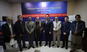 انہوں نے کہا، “پاکستان فیڈرل یونین آف جرنلسٹس کی جانب سے دیا گیا یہ اعزاز میرے لیے باعثِ اعزاز ہے، کیونکہ یہ پاکستان کے قومی صحافتی ادارے کی جانب سے اعتراف ہے۔”