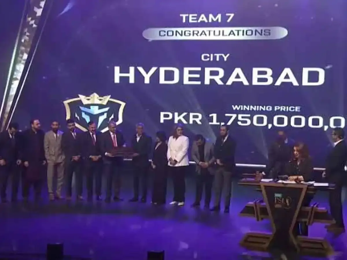 پاکستان سپر لیگ (پی ایس ایل) کی ساتویں ٹیم ایف کے ایس نے 175 کروڑ روپے کی بولی لگا کر خریدلی ہے ،نئی ٹیم کا نام حیدرآباد رکھا گیا ہے۔