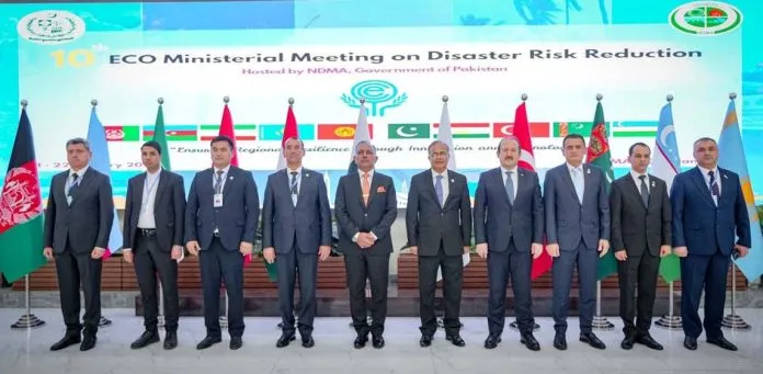 این ڈی ایم اے پاکستان کے زیر اہتمام اقتصادی تعاون تنظیم کا دو روزہ دسواں ای سی او وزارتی اجلاس اسلام آباد میں منعقد ہوا، ای سی او رکن ممالک نے آفات اور موسمیاتی خطرات سے نمٹنے کیلئے علاقائی تعاون اور مشترکہ اقدامات کو مزید موثر و مربوط بنانے کے عزم کا اعادہ کیا، اجلاس کی صدارت چیئرمین این ڈی ایم اے لیفٹیننٹ جنرل انعام حیدر ملک نے کی جو پاکستان کی جانب سے پہلی بار آفات اور موسمیاتی تبدیلیوں کے منفی اثرات کے تدارک کے حوالے سے ای سی او اجلاس کی میزبانی ہے۔