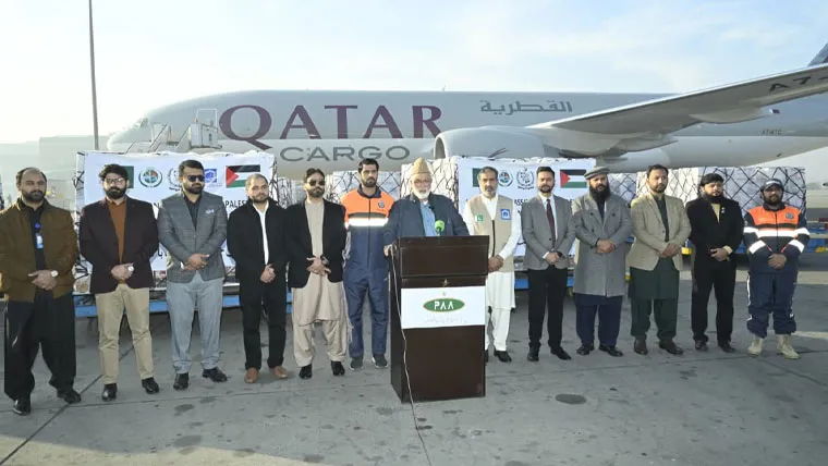 وزیراعظم کی ہدایت پر امدادی سامان خصوصی پرواز کے ذریعے علامہ اقبال انٹرنیشنل ایئرپورٹ لاہور روانہ کیا گیا، امدادی سامان میں آٹا، چاول، کھجور، کوکنگ آئل و دیگر ضروری اشیاء شامل ہیں۔