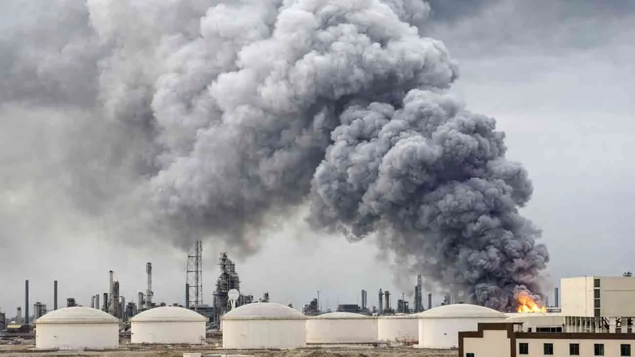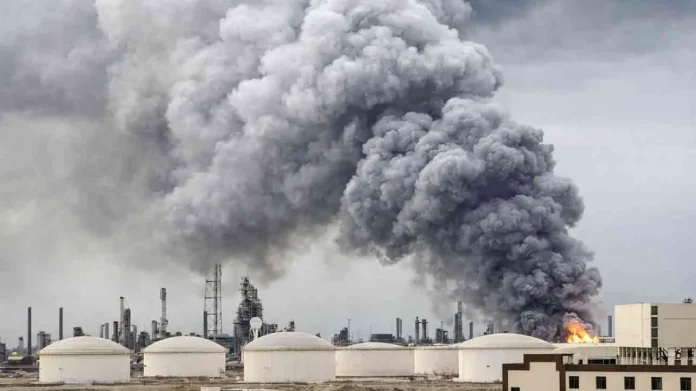 غیر ملکی میڈیا کے مطابق دارالحکومت کے قریب واقع آئل ریفائنری کی سمت سے گہرا دھواں بلند ہوتا دیکھا گیا ہے۔