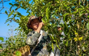 چائے کے مقامی کاشتکار یانگ مے ینگ نے کہا کہ اب اونچے درختوں سے چائے توڑنے کا موسم ہے۔ ہم سب بہت مصروف ہیں۔ چائے کے قطار در قطار کھیتوں میں اگائی گئی فصل کی کٹائی کے مقابلے میں یہ زیادہ محنت طلب ہے اور پتیوں تک پہنچنے کے لئے آلات درکار ہوتے ہیں۔