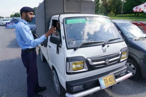اسلام آباد میں ایک پولیس اہلکار چیک پوسٹ پر گاڑی کی تلاشی لے رہا ہے۔امریکہ۔ ایران مذاکرات کے پیش نظر سکیورٹی کے انتظامات سخت کئے گئے ہیں۔(شِنہوا)
