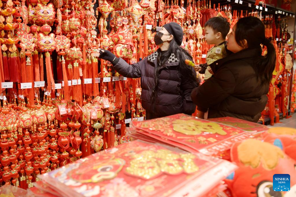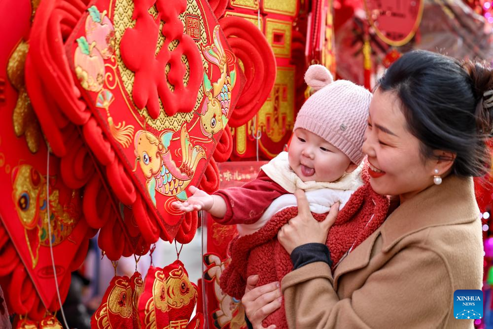 People select decorations for the upcoming Spring Festival in Hebi City, central China’s Henan Province, Feb. 7. 2026.